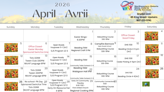 Dryden – Avrii “April” Event Calendar