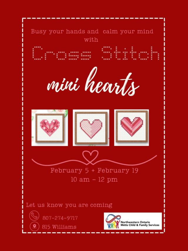 Fort Frances – Busy your hands and calm your mind with Cross Stitch mini hearts